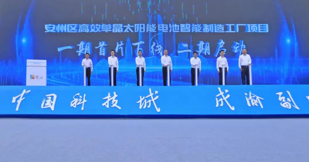 高效单晶光伏电池智能工厂项目是绵阳市2022年签约的百亿级项目之一,项目主体为安州发展集团并购的上市公司麦迪科技。该项目于2022年5月正式落户安州高新区,占地面积1000余亩,总投资102亿元,分三期建设,总规模为33GW新型TOPCon电池片,是集研发与智能、生产、制造为一体超级智慧工厂。