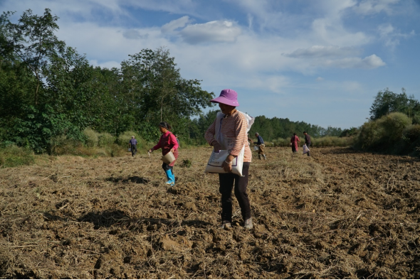 田间地头,机声隆隆,机器工人们熟练地操作着播种机在土地上来回穿梭,一粒粒饱满的麦种被均匀地播撒到土地里。对于机器难以触及的区域,则利用人工来进行播种。为保障小麦的出苗率和质量,工人们提前对土地进行了精细的整理,疏松土壤、施足基肥,为小麦的生长创造良好条件。