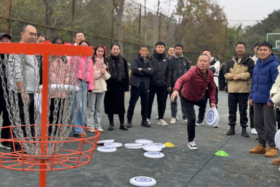 拓展活动游戏比拼环节将活动推向了高潮。员工们分组进行“旱地龙舟”“鼓动人心”“飞盘九宫格”“飞盘投篮”等活动挑战,成功的队伍欢呼雀跃,失败的队伍也不气馁,现场欢笑声、加油声此起彼伏,场面热闹非凡。